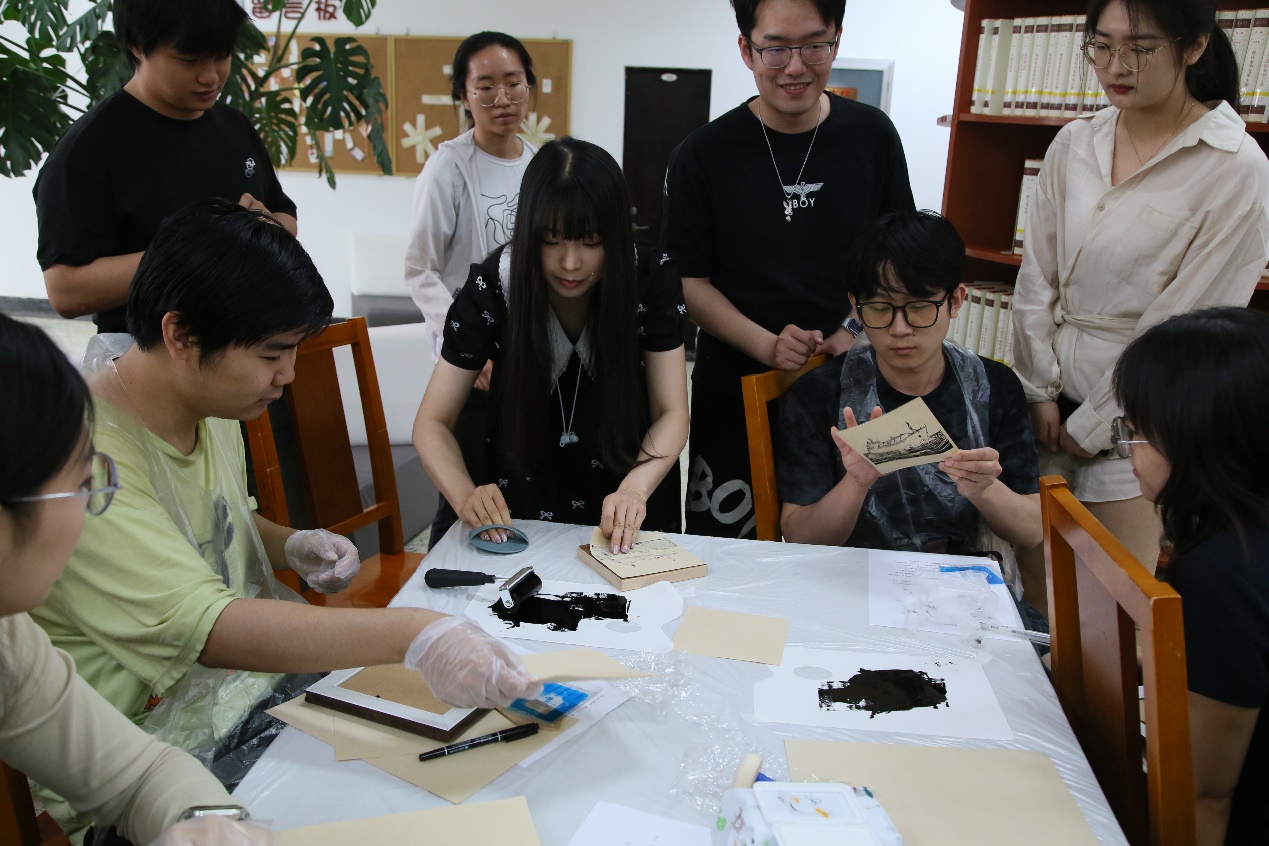 在“典籍视界”环节,师生共同观看了中央广播电视总台《典籍里的中国》节目《天工开物》精彩片段。在“古籍新解”环节,人工智能学院超级计算方向师生联合党支部书记孙庆骁、中国科学院计算技术研究所高通量党支部助理研究员宋舒寒分别以“探索《天工开物》中的能源智慧——‘双碳’背景下的能源转型”“科学思维与现代启示:从古籍智慧到科研创新”为题,解读了《天工开物》中的能源知识,阐述了古代科学思维对现代学科融合、科研创新的启示,分析了“双碳”战略目标下传统能源的转型路径,展望了人工智能与高性能计算相结合驱动全球能源领域变革的未来。在“古今对话”环节,人工智能学院2023级学生王赫萌、李泳江以“古今能源对话”为题表演了微情景剧,2022级学生宋英暄、相广滨进行了机器人展示。剧中,明代科学家宋应星“穿越”至现代,与中石大学生和能源AI助手机器人“小源”相遇,并展开了跨越时空的对话,传达出“承古智、拓未来,科技为民”的理念。在“科技随想”环节,超算俱乐部学生社团成员宋家乐以“‘方寸之思,万象之演’——《天工开物》精神下的超算竞赛实践”为题,分享了参加世界大学生超级计算机竞赛等比赛的心路历程。在“薪火相传”环节,现场师生挑选自己喜欢的《天工开物》名言佳句,书写在卡片上,激发科研热情。在“古技今用”环节,师生们还亲身体验了非遗版画拓印,精心制作了将能源主题元素与古法技艺巧妙融合的专属能源版画。