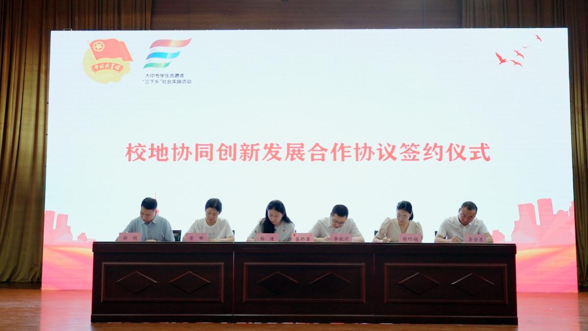 李秋同、韩瑾代表双方在协议上签字。根据协议,双方将围绕传承红色基因、科技创新、乡村振兴、绿色发展、社会服务、民族团结、卫国戍边等各领域共建校地合作平台或社会实践基地;开展“青苗计划”,利用假期选拔学生干部兼任乡镇(街道)、村(社区)团组织副书记,配合基层团组织开展工作;联合开展就业招聘、创新创业大赛和职场体验等活动。双方希望以学校为依托、以项目为抓手、以活动为载体,推动榆林政治、经济、文化等各项事业的发展,同时为学校青年学生成长成才搭建综合平台。