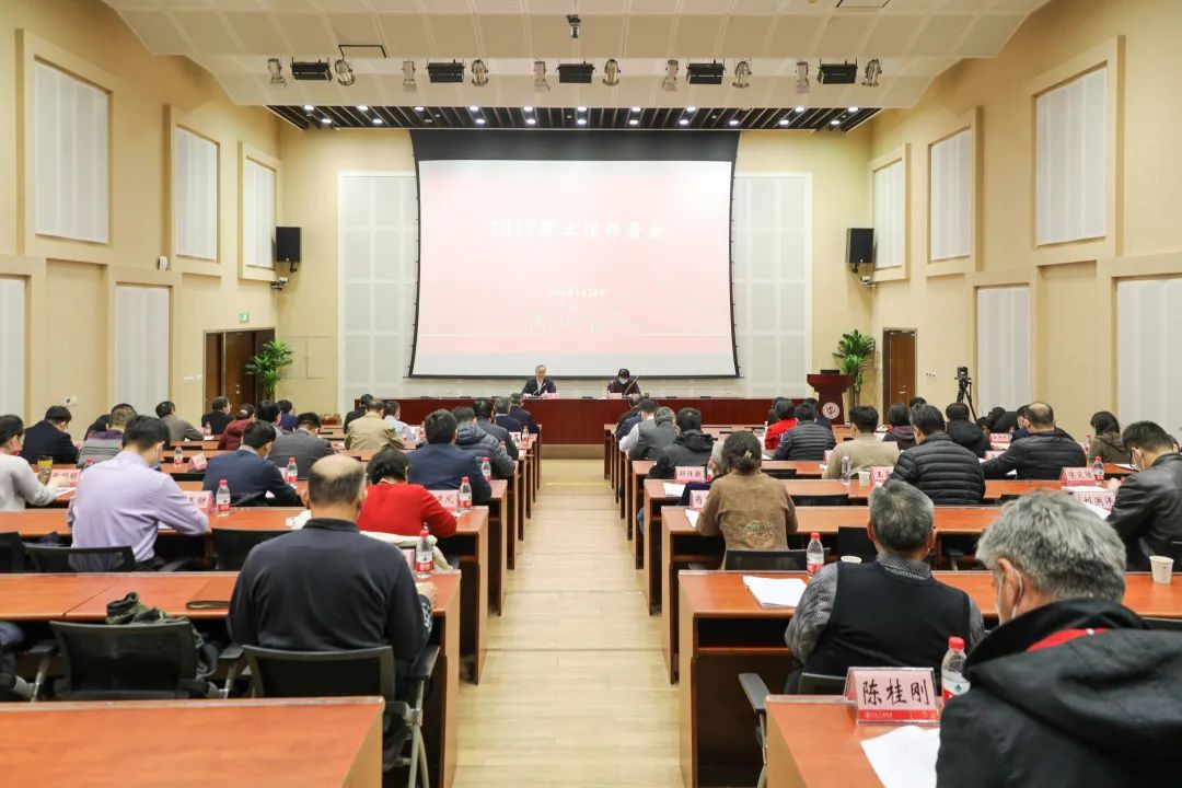 党委书记陈峰主持会议并讲话,校长、党委副书记吴小林总结回顾2021年学校主要办学成绩,部署学校2022年重点工作。