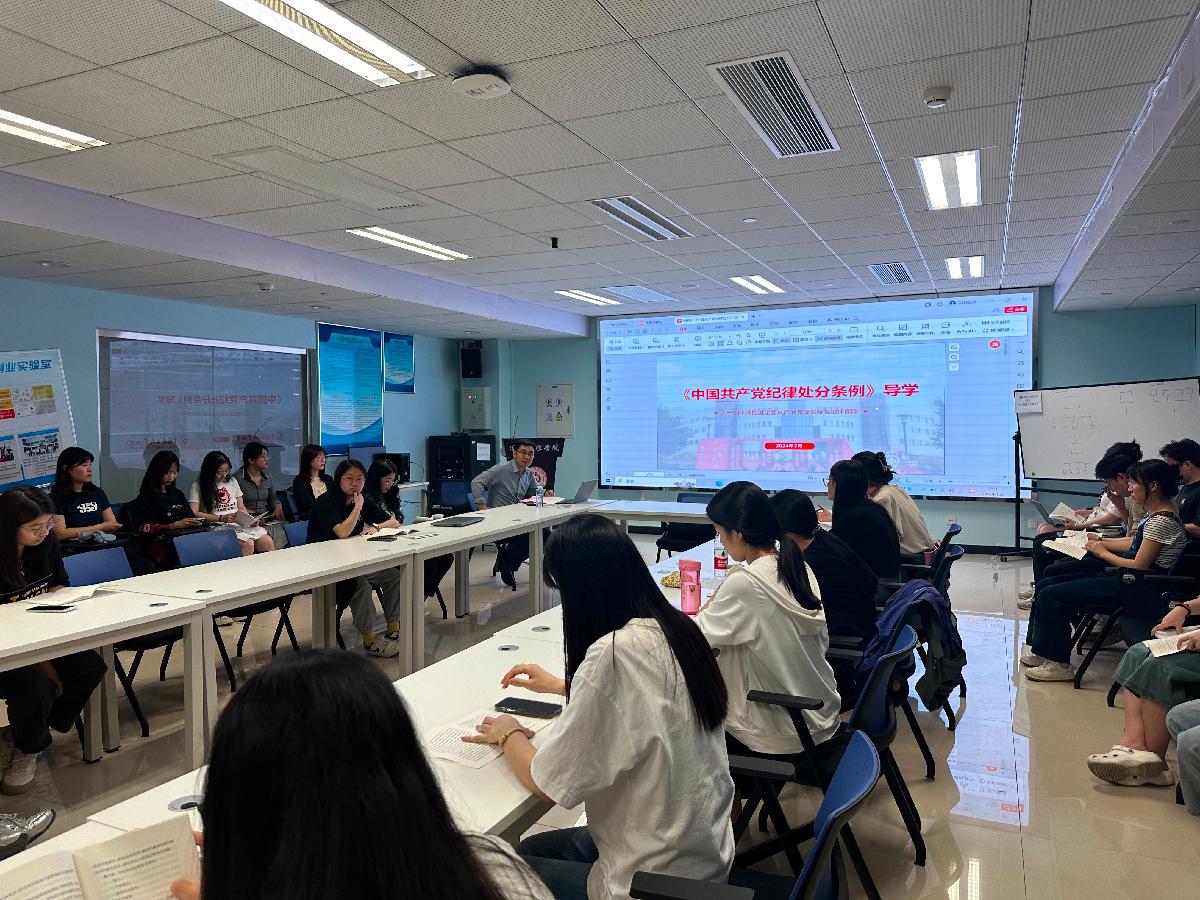 学院党委扎实推进党纪学习教育,坚持领导带头学、全员覆盖学、专班督导学,组织开展专题读书班,将个人自学、交流研讨有机结合,做到逐章逐条、新旧对照、联系实际开展学习。学院领导深入基层党支部,与师生支部共学条例,学院党委书记和师生支部书记讲授主题党课,帮助师生坚定政治方向、增强学习实效。学院充分运用党性教育平台,督促全体党员参与,以线上线下学习相结合的方式进一步深化对《中国共产党纪律处分条例》的理解把握,促进学纪知纪的思想认识持续提升、明纪守纪的主动意识不断增强。