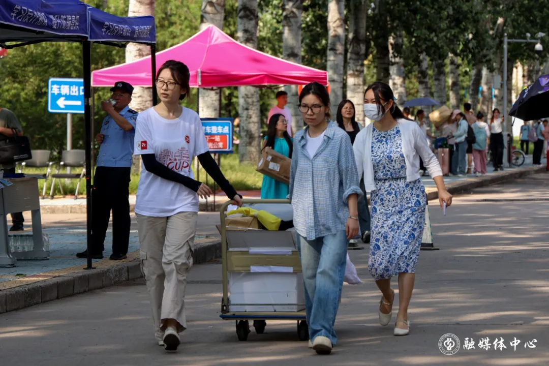 校园里,忙碌与秩序交织,热情与温暖并蓄。接过行李,推动推车,用质朴的行动传递最真诚的温暖。