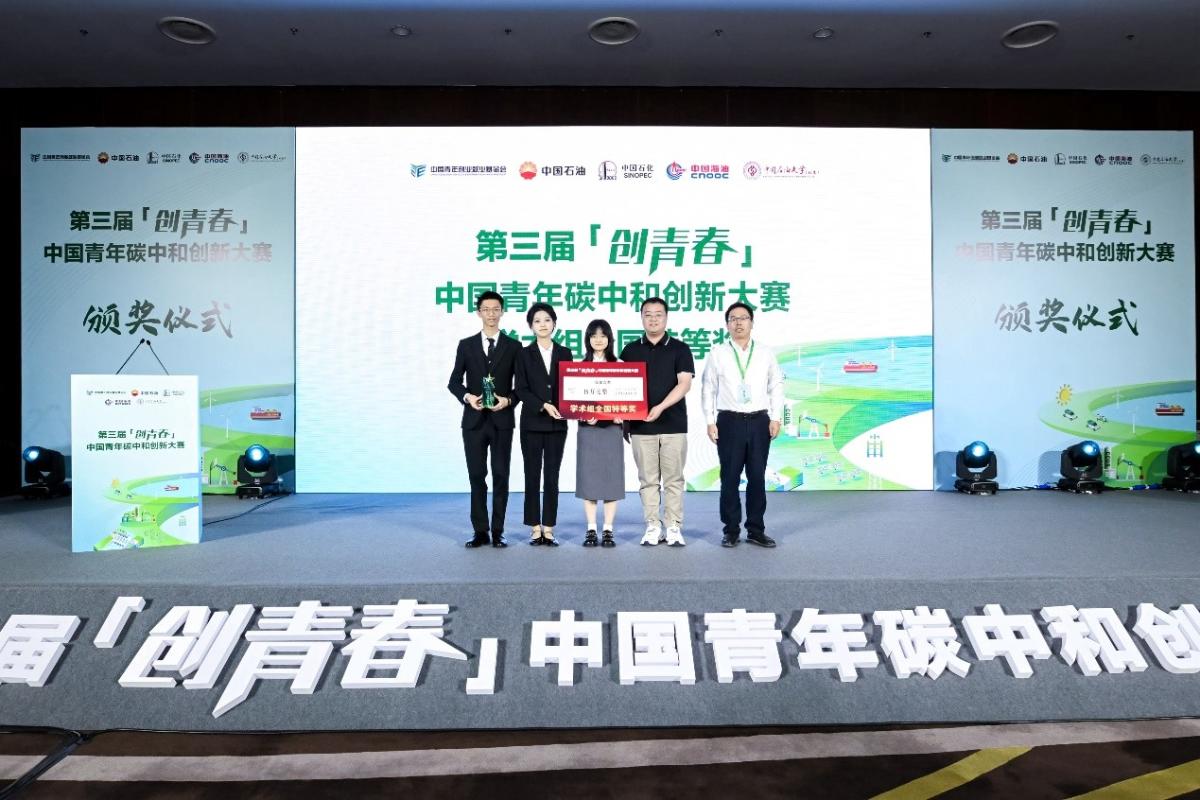 6月7日至8日,由中国青年创业就业基金会、中国石油大学(北京)、中国石油天然气集团有限公司、中国石油化工集团有限公司、中国海洋石油集团有限公司共同举办的第三届“创青春”中国青年碳中和创新大赛全国总决赛及颁奖仪式在国家会议中心举办。