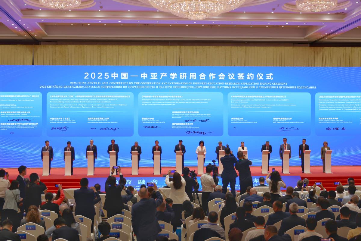 在2025中国中亚产学研用合作会议上,新疆维吾尔自治区党委书记马兴瑞,教育部党组书记、部长怀进鹏,白俄罗斯教育部部长伊万涅茨,哈萨克斯坦科学和高等教育部部长努尔别克,乌兹别克斯坦高等教育、科学和创新部部长沙里波夫出席并致辞。教育部副部长吴岩主持会议,副部长王光彦出席会议。