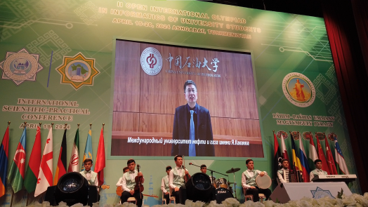中国石油大学(北京)校长金衍以视频形式在开幕式上致辞。值得一提的是,会场内播放的中国歌曲是由中石大觅音社学生为习近平总书记复信中国石油大学(北京)的中亚留学生一周年特别创作的。参赛选手段沛枫作为创作者之一,当听到熟悉的旋律在异国赛场响起时,他无比激动和自豪。“能听到我们为习近平总书记复信中国石油大学(北京)中亚留学生一周年编写的歌曲在异国响起,很惊喜也很触动!这是中国和土库曼斯坦的友谊见证,我和小伙伴们感到骄傲,也为中土情谊而感动。”