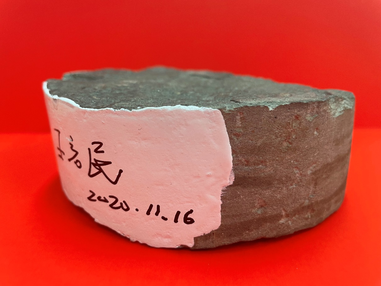 启民校友最引以为荣的科技贡献之一是“表外储层开发技术”,所谓“表外”即为在油田开发初期未计算在储量表之内的油浸、油斑等差油层或零星储量。启民校友觉得,仅仅依靠展板上的图片,很难让人对表外储层有直观的感受。于是,老人家特意拿了一块岩芯,从大庆一路带来北京。在开展仪式上,负责讲解的图书馆副馆长杨薇就拿着这块岩芯向参观的领导和师生展示,让很多非地质专业的人也弄清楚了究竟何为“表外储层”。岩芯仿佛在提醒着人们,在有的人眼里,它是无用的,但在王启民眼里,它是开发的潜力和稳产的希望,这说明独到的眼光和创新的思路有多么重要。因为岩芯的重要意义,我们提出了一个“非分”的请求,问启民校友能否把岩芯留在学校,在校史馆永久珍藏。启民校友说岩芯是从大庆岩芯库中借的,必须归还。我们就从学校实验室中找到一块来自大庆油田的同类型岩芯,启民校友后来拿着学校的岩芯讲解座谈,并在岩芯上签名留念。这块岩芯和启民校友为本次展览提供的手稿一起,将在展览后留存在校史馆,成为珍贵馆藏。