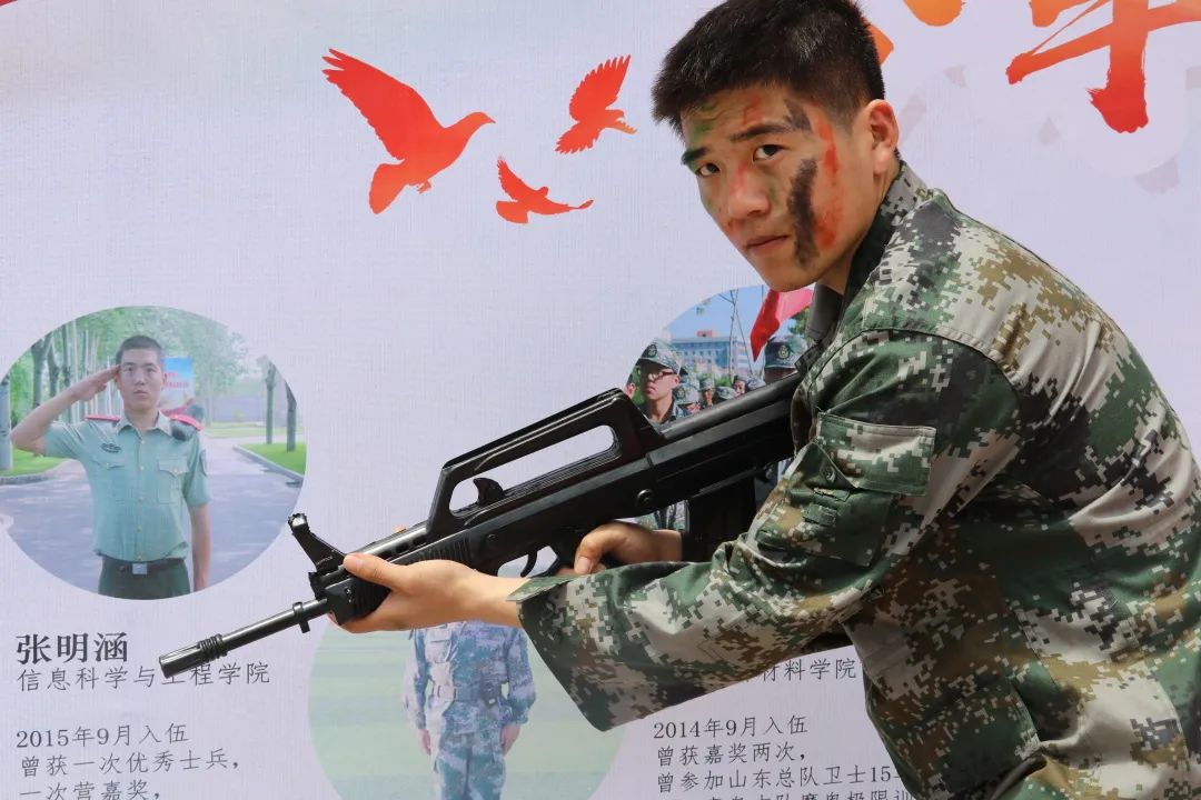 但是,成为一名军人的梦想一直在他心里涌动。“在校参军入伍,不仅可以完成自己的梦想,还可以丰富人生阅历,拓宽视野。退伍后,还能继续完成学业。”大一刚结束,张明涵便报名参军,在武警部队机动师某师服役。