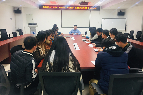 11月25日中午石大信息科学与工程学院在主楼B1421会议室召开学院“不忘初心、牢记使命”主题教育工作部署会学院全体师生党支部书记参加了会议