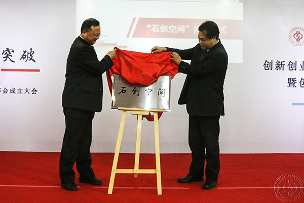 吴小林为创新创业教育导师代表颁发聘书。雷玉江与潜能恒信能源技术公司董事长周锦明共同为石创空间揭牌。学生工作部负责人为创业校友自发成立的1953俱乐部授牌。