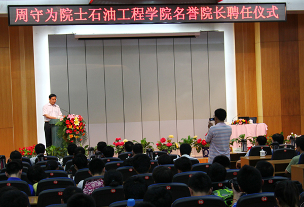 615日下午,中国石油大学在翠宫报告厅隆重举行周守为院士石油工程学院名誉院长聘任仪式暨学术报告会。中国海洋石油总公司人力资源部副总经理陈和志、科技发展部副总经理刘一峰,校党委书记蒋庆哲、校长张来斌、石工学院和相关部门负责人出席仪式。仪式由副校长张士诚主持。石油工程学院400余名师生参加了报告会。
