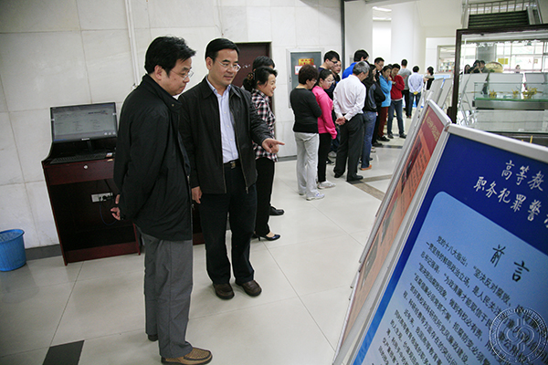 5月12日,石大在图书馆一层举办“高校腐败典型案例警示教育”展览,党委书记蒋庆哲,党委副书记、纪委书记刚文哲带领部分机关干部和教职工参观了展览。