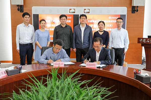 韩尚峰、王耀国分别代表北京中国石油大学教育基金会和宁波锋成先进能源材料研究院签署了捐赠协议,研究院将向石大基金会捐赠10万元教育基金,用于支持石大发展。石油工程学院党委书记宁正福代表学院与王耀国签署了战略合作框架协议。