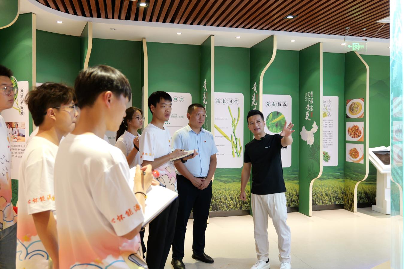 “我们正在争取申报将萱草花定为中国的母亲花,这也是文化自信的一种表现。”黄花菜博物馆里,返乡创业的“黄花王子”肖智雄向实践团介绍着他的规划。祁东县把握湖南省旅游发展大会的历史机遇,积极通过祁东黄花菜节,直播带货等方式推介黄花小镇,深度挖掘“包容含蓄,顽强拼搏,与人为善”的黄花菜精神,展现乡村振兴新面貌。实践团走访黄花文旅园、黄花公园以及两家当地龙头企业,分析了“公司+基地+农户”模式带动当地40万菜农增收致富的奥秘;探讨了科技赋能对提升黄花菜品质,打造高品质产业链的指导意义。针对产业协同发展,产品同质化竞争和电商人才缺口问题,实践团还结合调研成果与黄土铺镇相关负责人开展了热情交流。