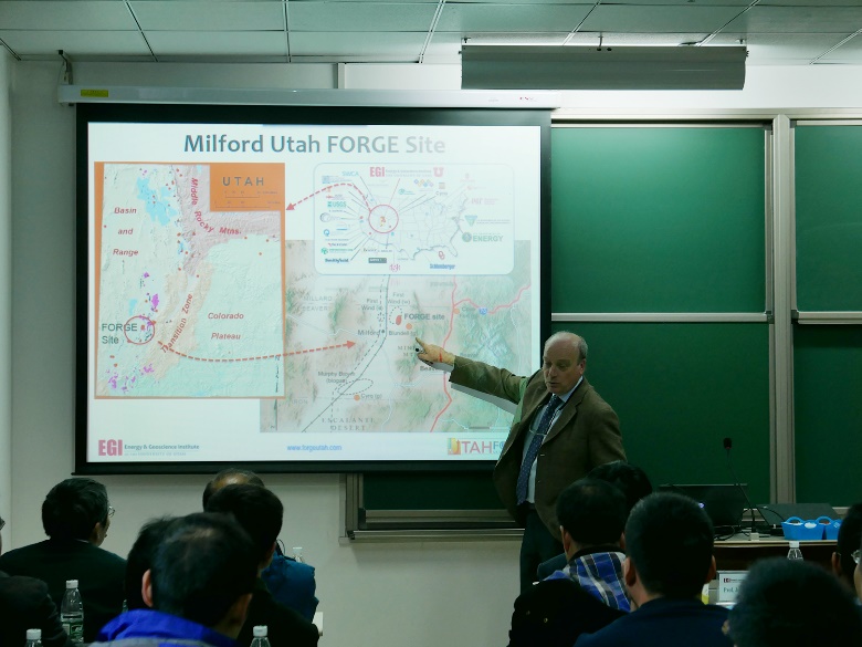 2016年11月27日,高等学校学科创新引智计划项目“深部地热资源开发基础研究”学术交流会在中国石油大学(北京)举行。此次学术交流会由中国石油大学(北京)、油气资源与探测国家重点实验室、非常规油气协同创新中心共同主办。学术交流会由中国工程院院士、石油工程学院李根生教授主持。美国犹他大学能源与地质研究所高级科学家John教授、中国科学院地质与地球物理研究所地热资源研究中心主任庞忠和教授、中国石油大学(北京)油气井工程系主任黄中伟教授作了精彩的报告。美国犹他大学、中国科学院、中石化工程院、中国石油大学(北京)、西南石油大学等5家单位的25名研究人员出席会议,并吸引了100多位老师和学生前来参会。