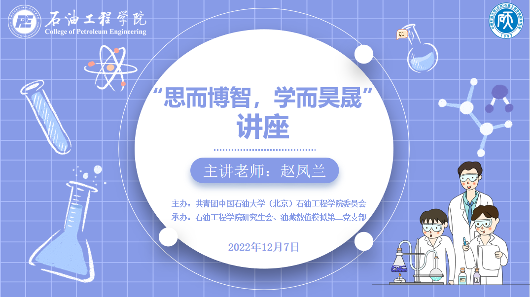 为帮助广大同学克服疫情带来的困难和挑战,12月7日,石油工程学院研究生会和油藏数值模拟第二党支部联合承办“思而博智,学而昊晟”讲座,特邀请石油工程学院赵凤兰老师为大家做“研究生如何做科研?”主题分享,石油工程学院团委书记肖亚楠出席讲座,学院200余名硕博学生参加讲座,讲座由辅导员刘衡升主持。