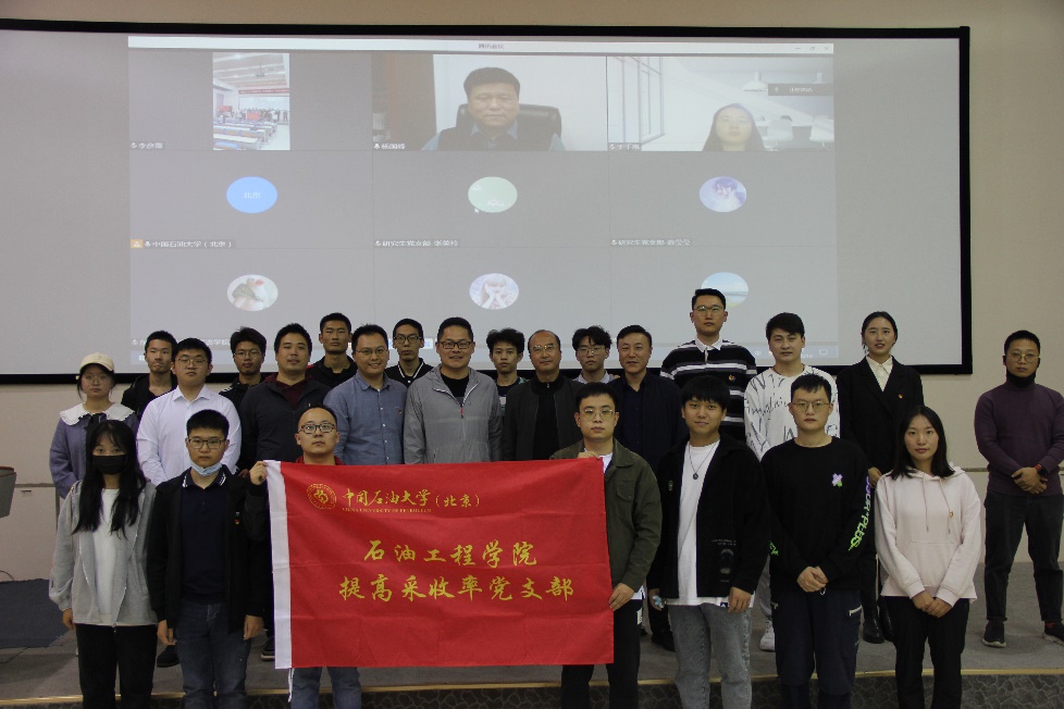 为迎接党的二十大胜利,传承大庆精神,弘扬铁人精神,2022年10月13日下午,中国石油大学(北京)石油工程学院油气田开发工程教工第一党支部、提高采收率党支部、石工本21-4团支部与东北石油大学外国语学院研究生党支部联合开展“喜迎二十大,永远跟党走,争做新铁人”党团共建活动。东北石油大学外国语学院党委书记杨国峰,中国石油大学(北京)石油工程学院党委副书记刘东东、团委书记肖亚楠、油气田开发工程第一党支部书记赵晓亮、石工本21-4班班主任刘哲宇,相关党支部党员、团支部团员出席活动。