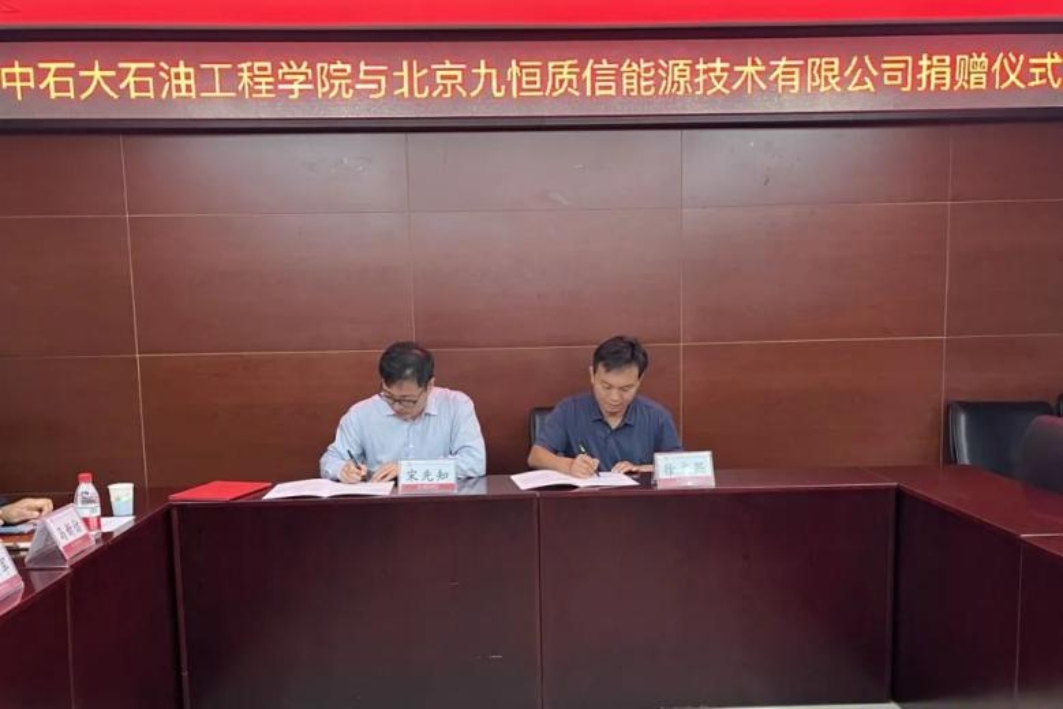 9月27日上午,北京九恒质信能源技术有限公司奖学金捐赠仪式在中油大厦A310举行。北京九恒质信能源技术有限公司董事长、石油工程学院本科1997级校友徐文熙,石油工程学院党委书记黄世军,院长宋先知和北京中国石油大学教育基金会工作人员参加了此次捐赠仪式。受北京中国石油大学教育基金会委托,宋先知与徐文熙董事长签署了捐赠协议,并颁发捐赠证书。北京九恒质信公司捐赠30万元并设立了“徐文熙励志奖学金”,用于支持学院研究生教育教学工作。