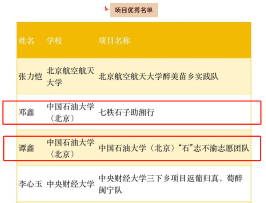 2023年11月13日,由中国青年报社主办的2023大学生社会实践成果“千校千项”网络展示活动公布获奖团队,中国石油大学(北京)石油工程学院的“七秩石子助湘行”、“石”志不渝志愿服务队、“双碳”时代服务队和“求取闽宁致富经,共绘西北能源梦”4支社会实践队伍获评优秀项目团队。