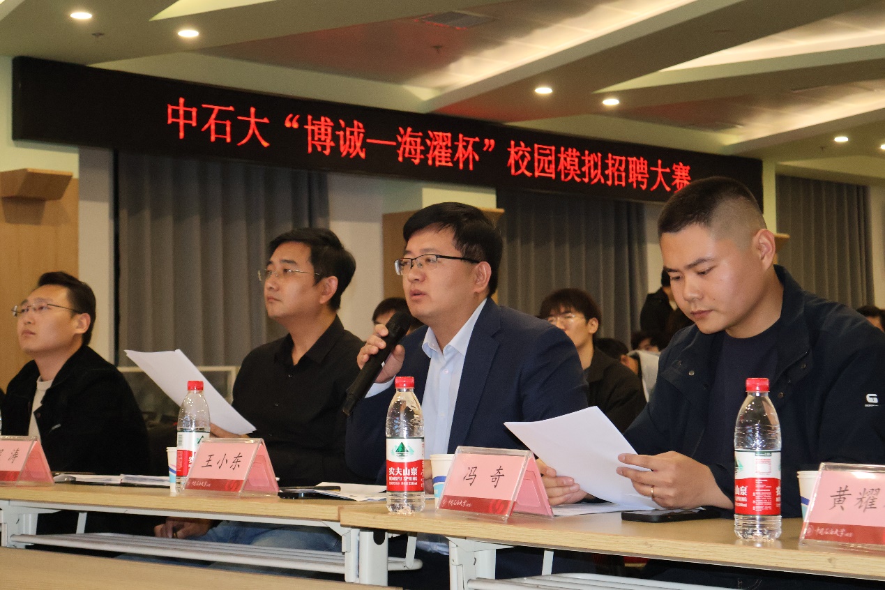 本次大赛以“七十五载长歌奋进,赓续前行能源报国”为主题,由共青团中国石油大学(北京)石油工程学院委员会主办、石油工程学院研究生会承办,得到了北京石大博诚科技有限公司和陕西海濯能源有限公司的联合赞助。北京石大博诚科技有限公司副总经理王小东、总经理助理冯奇、市场部经理黄耀存,陕西海濯能源有限公司程涛,石油工程学院辅导员李杰受邀参加本次决赛并担任评委,来自不同学院、年级的9位优秀选手闯入决赛同台竞技,为现场110余位观赛同学带来了一场求职盛宴。