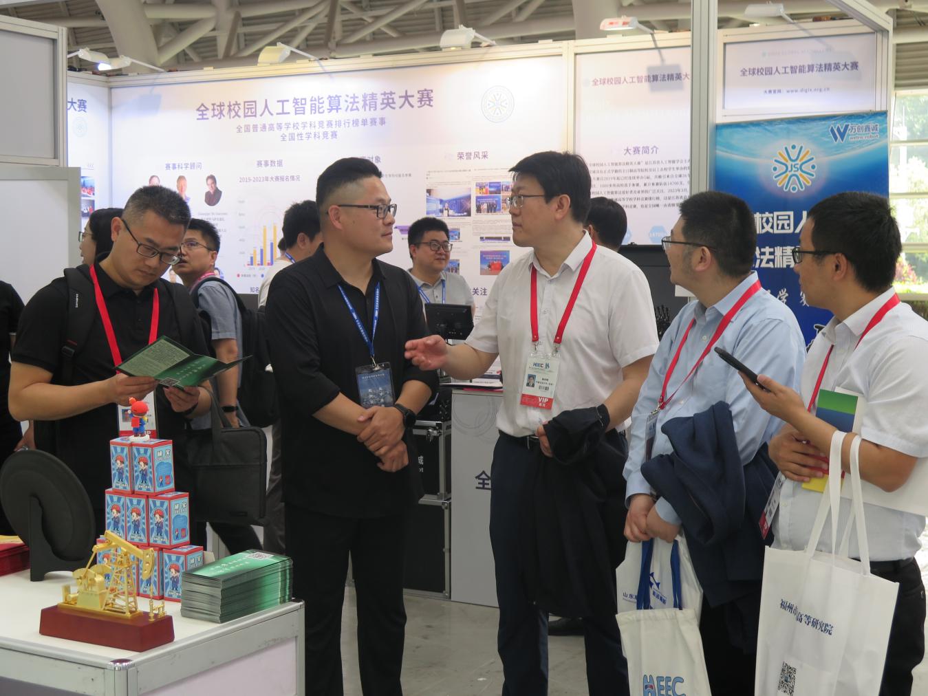 中国高等教育学会竞赛评估与管理体系研究专家组成员赵春鱼到展位调研指导,大赛组委会副秘书长刘东东向其介绍办赛历程、理念、成果、成效等方面情况,赵春鱼表示充分肯定,同时对大赛办赛机制、产教融合、对外交流、人才培养等方面进行了交流研讨。