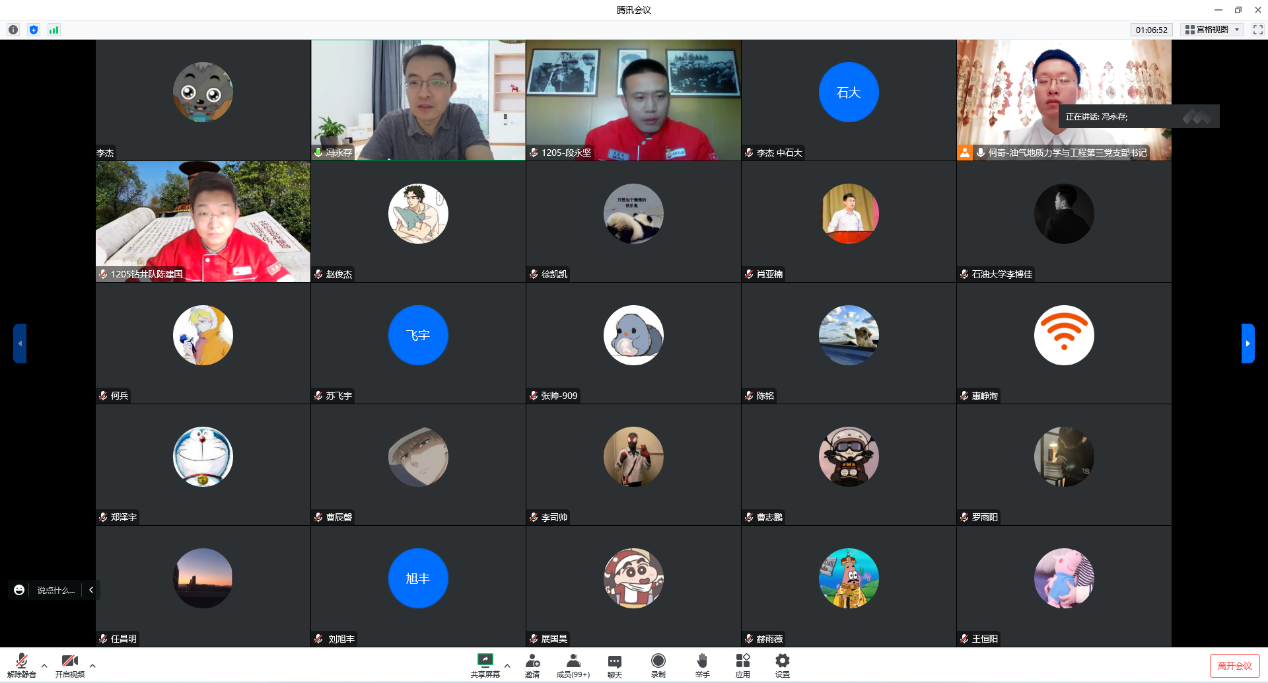 油气地质力学与工程第三党支部思想导师冯永存作总结讲话,他首先对两位校友线上回访母校表示感谢。他表示铁人精神是一种力量,在任何时代,任何地点都需要继承与弘扬铁人精神,希望能够通过两个党支部的结对共建,以铁人精神为核心,进一步推进“产”“学”“研”“用”深度融合,从而实现校企双赢。