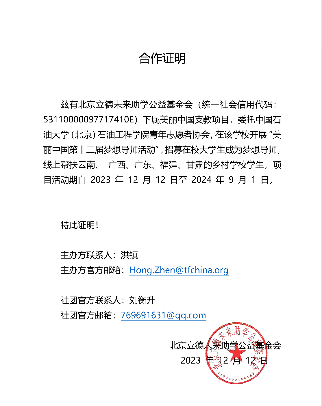 接下来,石工青协将在传承第十一届特色经验做法的基础上,不断创新工作举措、增强服务能力、提升工作效率,面向全校招募优秀的“梦想大老师”,用心用情设计喜闻乐见、寓教于乐、紧接地气的“趣味课程”, 切实为第十二届对接单位:广东省河源市连平县忠信镇柘陂村华南小学的乡村留守儿童拓宽学习视野、激发创新思维、丰富课余生活、增强科学素养,度过一个健康、快乐、丰富的学期生活贡献中石大青年的智慧和力量。