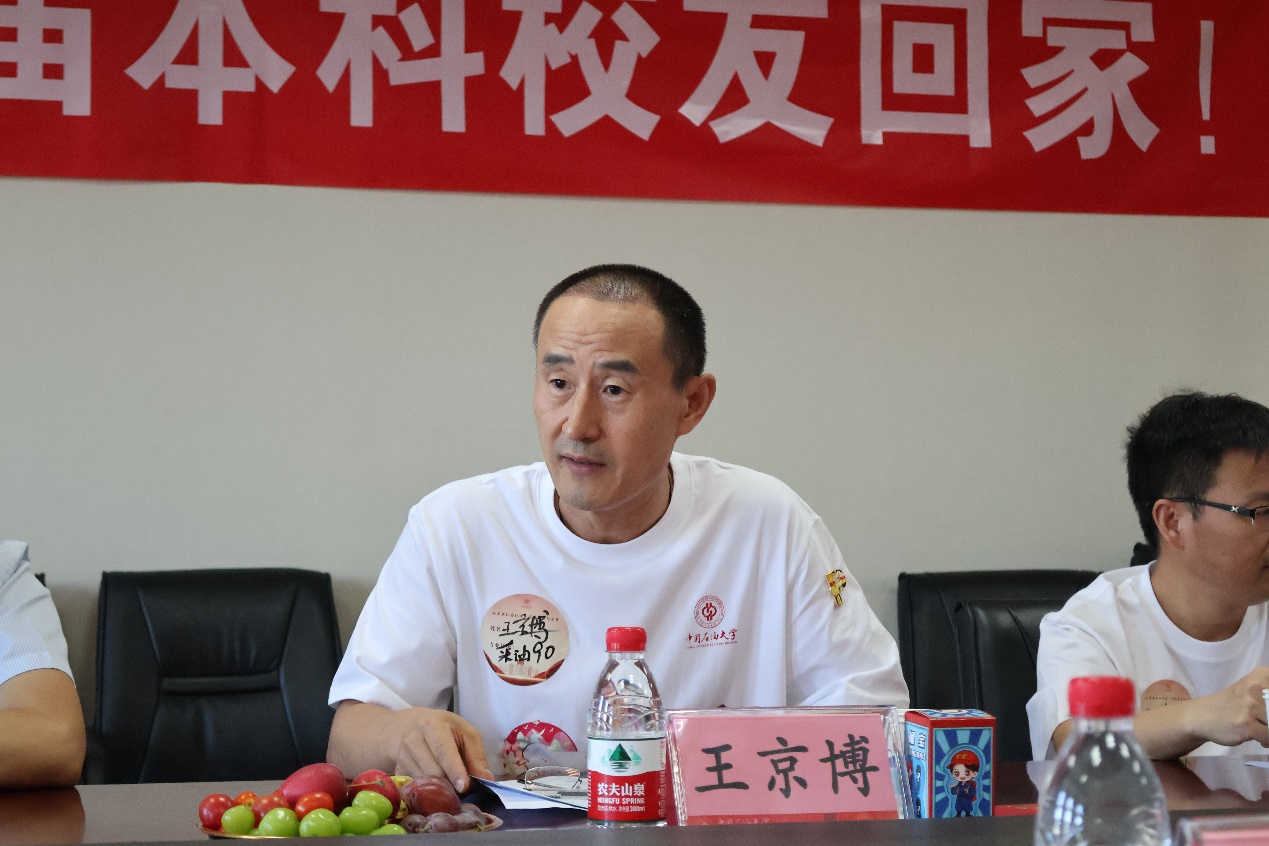 第一堂班会、第一次上课、第一次集体活动……张士诚细数与校友们的校园点滴,对校友们的发展如数家珍,并希望校友们坚守岗位,为国家能源战略贡献中石大力量。