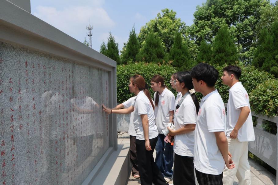 图为实践团成员学习参观丁玲烈士革命事迹