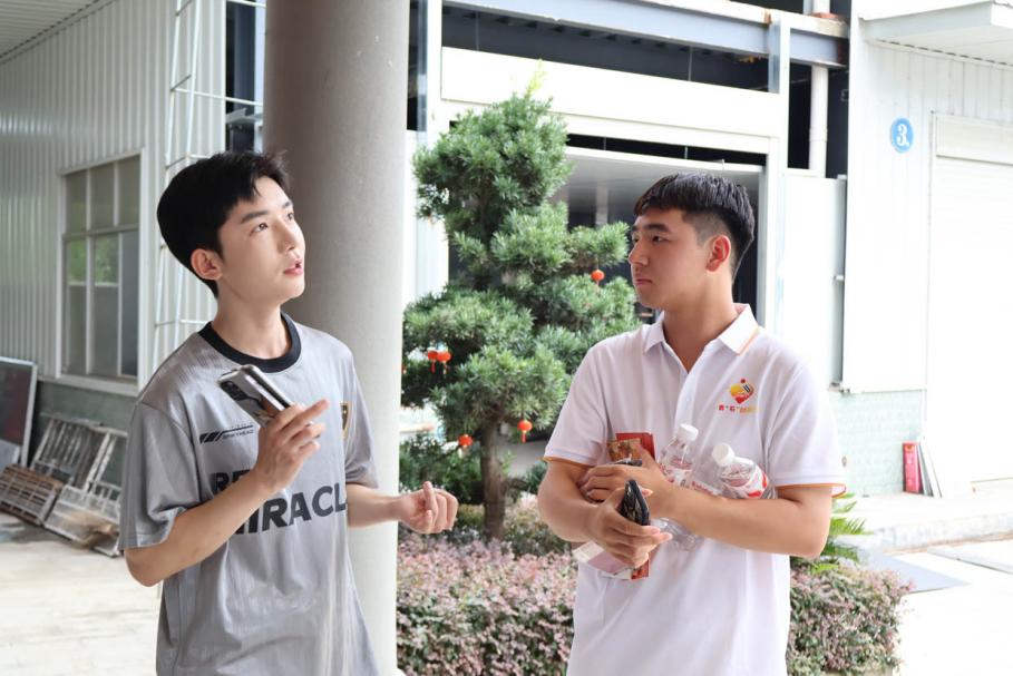 图为实践团成员与源宏米粉公司负责人畅聊产品包装设计