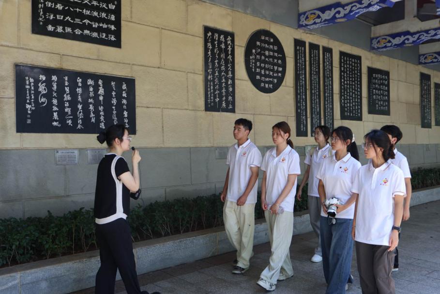 图为讲解员为实践团成员讲解诗墙文化的故事