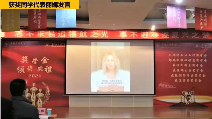 Among them, GALIMOVA ADELINA, a 2018 undergraduate international student, won the "Best International Student Scholarship". GALIMOVA ADELINA, 22, from the Russian Federation, is currently a fourth year undergraduate majoring in petroleum engineering. She actively participated in various activities and competitions with excellent comprehensive performance. Because GALIMOVA ADELINA is currently in Russia, she made a video speech as the award-winning representative at the award ceremony, sharing her learning experience and award-winning feelings, showing the full spirit of international students and excellent comprehensive quality.