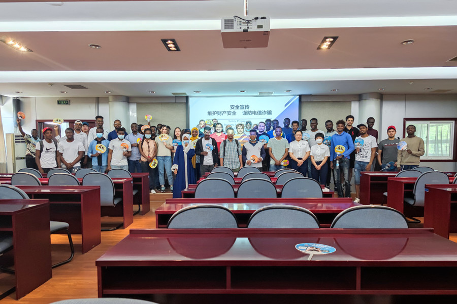 The safety publicity specialist Ma Yue popularized relevant knowledge to the international students of China University of Petroleum (Beijing) from four aspects of the types and common forms of telecom fraud, how to identify and prevent telecom fraud and the remedial measures after being cheated. She warned the students not to seek small profits and call the 110 alarm number for help when necessary.