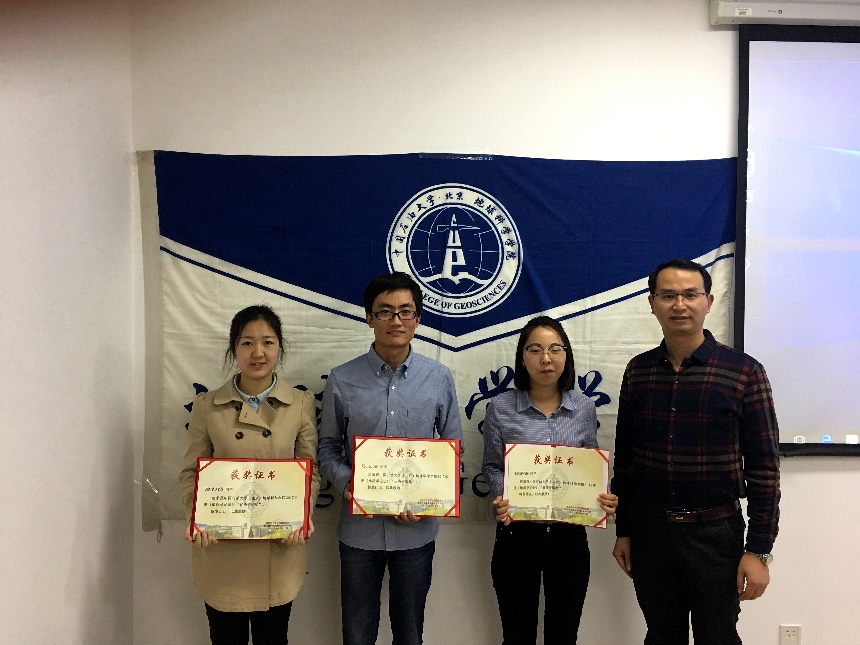 4月12日下午,地质学系“地质学论坛”最佳学术报告颁奖典礼在地质楼206会议室举行。地球科学学院副院长岳大力老师,地球科学学院陈书平老师、鲜本忠老师,获得荣誉的主讲人以及学生代表们出席了颁奖典礼。