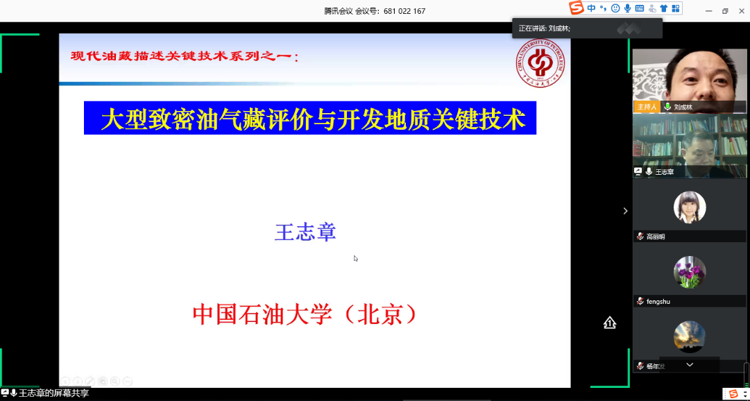 2020年4月29日晚,地球科学学院油气勘探与开发地质系通过腾讯会议以线上学术交流的形式,成功举办了第三十八期的学术沙龙。本期学术沙龙以“大型致密油气藏评价与开发一体化关键技术”为主题,由地球科学学院王志章教授主讲、刘成林教授主持,约280位校内外师生及专家共同参加了此次学术活动。