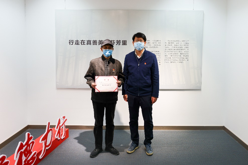学校党委副书记、副校长韩尚峰,中国书法家协会会员、昌平区书法家协会副主席蔡利国,学校党委宣传部、团委、体育与人文艺术学院等部门及学院负责人等为获奖代表颁奖,并一同参观了“红色昌平 百年印记”篆刻艺术作品展。
