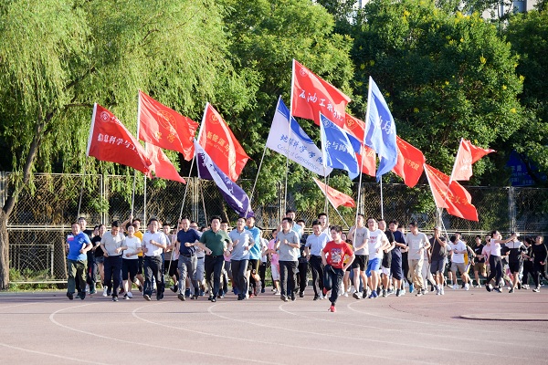 6月14日晚,中国石油大学2019届毕业生最后一堂体育课·校园跑在红旗操场鸣枪起跑。党委副书记、纪委书记、工会主席韩克飞以及各学院负责人和毕业生代表参加了活动。