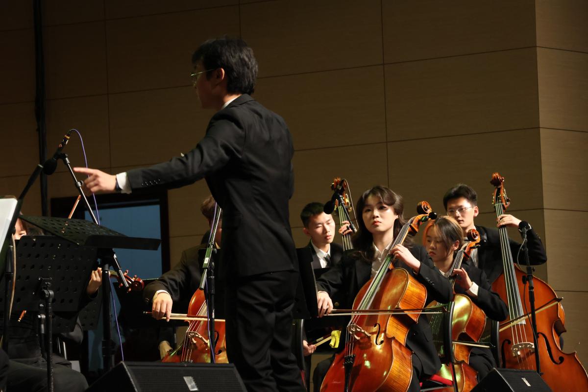 管弦音乐会以“美育浸润、校际共情”为核心。中国政法大学管弦乐团演绎《Flying》《An Unending Legacy》《Nostalgia》及《加勒比海盗》四首作品。旋律时而灵动轻快,时而深沉厚重,呈现了不同曲目的情感色彩。北京化工大学交响乐团带来了德沃夏克的经典曲目《E小调第九交响曲“自新大陆”》。乐团以饱满的演奏状态,诠释了乐章的深沉情感,带领现场师生沉浸式领略古典音乐的魅力。北京警察学院管乐团奏响《名侦探柯南》经典主题曲,熟悉的旋律唤醒了观众的青春记忆。作为主办方,中国石油大学(北京)管弦乐团压轴登场。演出《Celebration》以热烈欢快的节奏点燃现场氛围,《Into the Clouds!》用激昂的旋律传递青春奋进的力量,《粉红豹》《迈克尔·杰克逊金曲串烧》融合了经典质感与潮流活力,《Wild Blue Yonder》展现恢弘气势。音乐会尾声,四校乐团成员携手演出了《无人智胜进行曲》与《钢铁洪流进行曲》,将学子的青春热忱与深厚情谊融入乐声之中。
