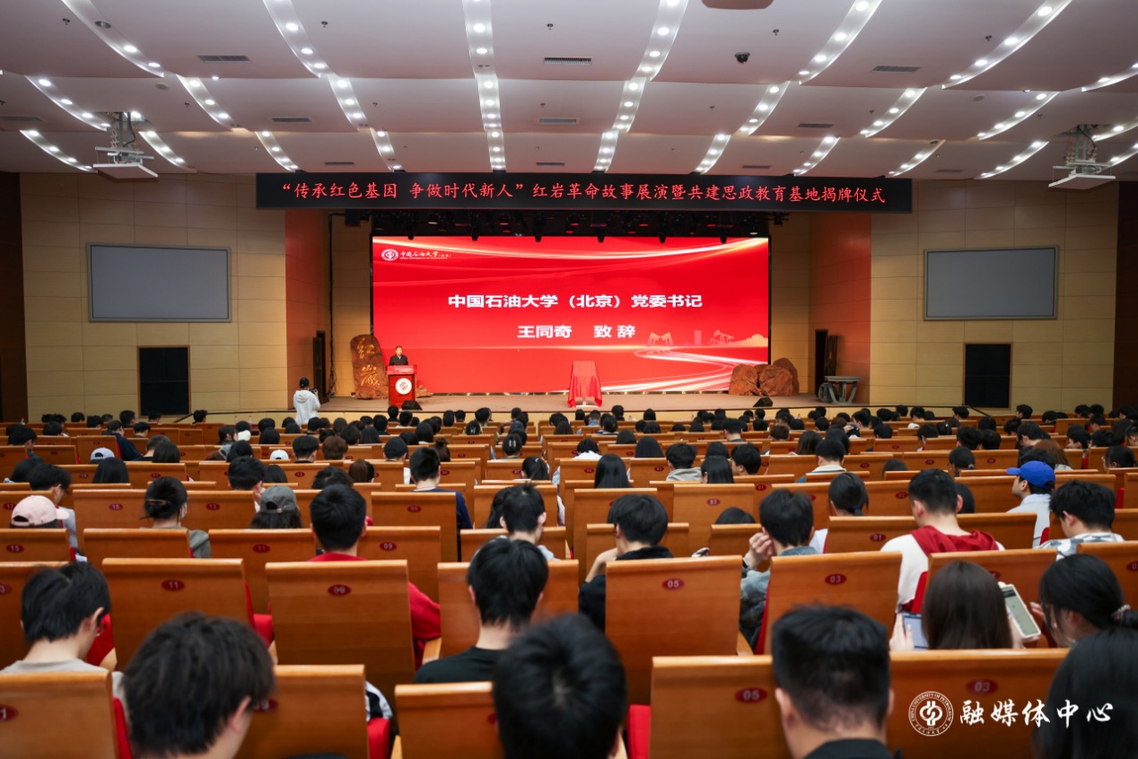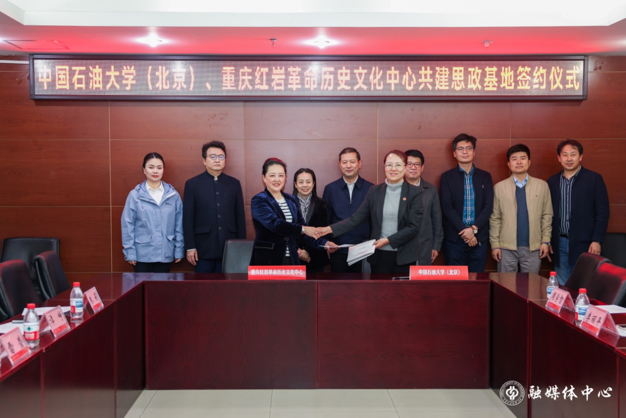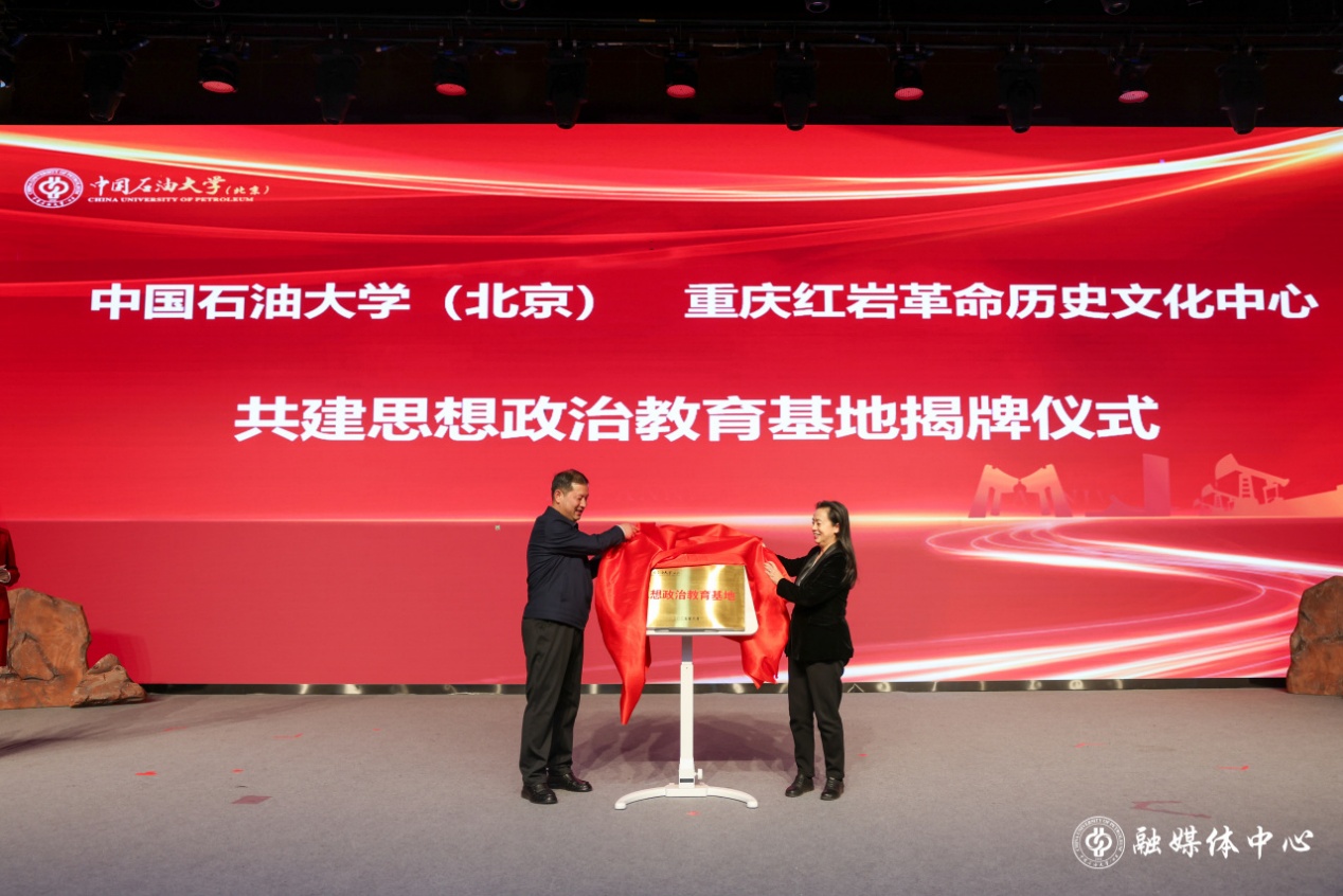 演出前,学校与重庆红岩革命历史文化中心签署合作协议,共建思想政治教育基地。王同奇、雷莹共同为“中国石油大学(北京)思想政治教育基地”揭牌。