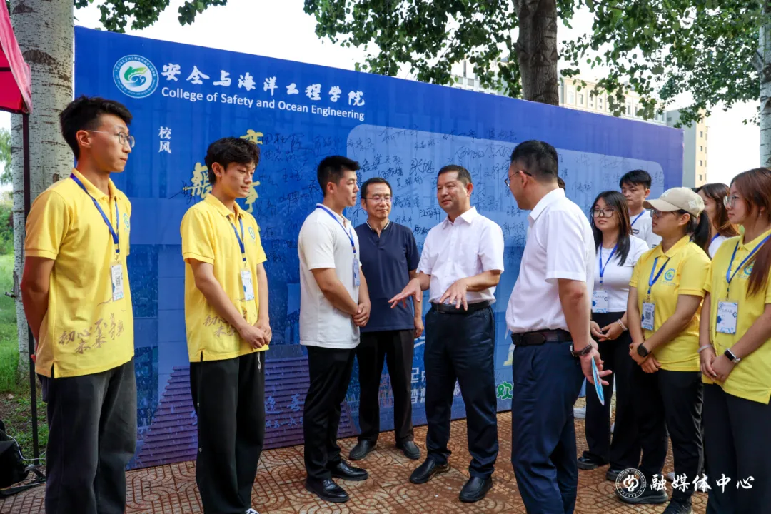在机械与储运工程学院报到点,2024级研究生新生孙水静正在办理入学手续。王同奇鼓励他在学术道路上勤学苦练、不断超越、勇往直前,勇担青年一代的责任与使命。在地球物理学院报到点,2024级研究生新生管星宁告诉王同奇,自己的第一志愿就是中国石油大学(北京),能考上自己心仪的学校非常开心,未来将珍惜学习机会,为自己的科研梦想努力拼搏,为端牢能源的饭碗贡献自己的力量。王同奇叮嘱管星宁要找到自己喜欢的研究方向,规划好个人的发展,将来为科技强国贡献自己的力量。