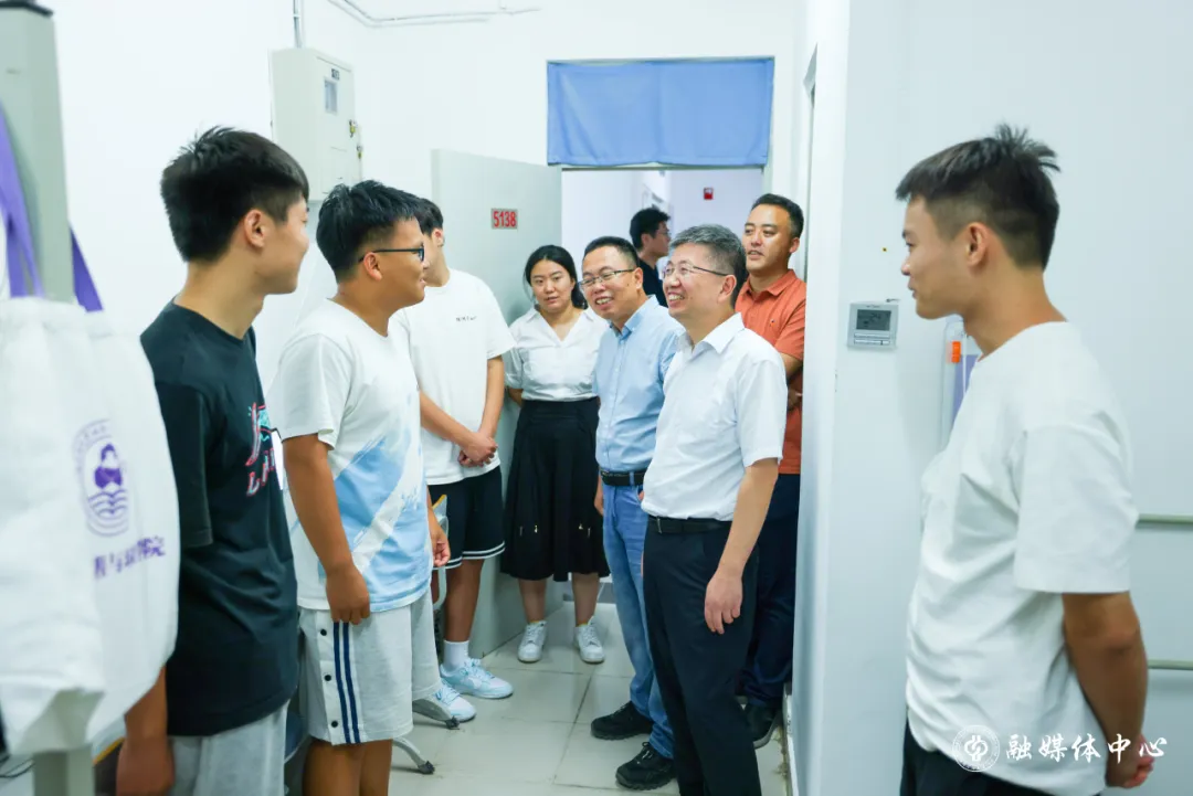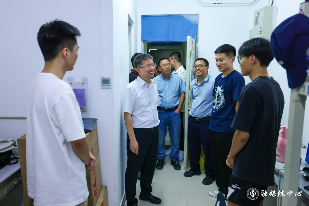 学校党委书记王同奇、校长金衍、党委副书记文永红前往报到现场和宿舍看望研究生新生,了解迎新工作开展情况。