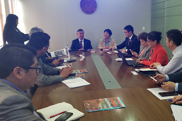 在厄瓜多尔基多圣弗朗西斯科大学,山红红一行会见了该校校长Santiago Gangotena及两校共建孔子学院中外方院长,召开了2019年孔子学院理事会会议。会议总结分析了孔子学院发展取得的成绩和存在的问题,并就下一步改进方向达成了共识。会后,山红红一行看望了孔子学院汉语教师。