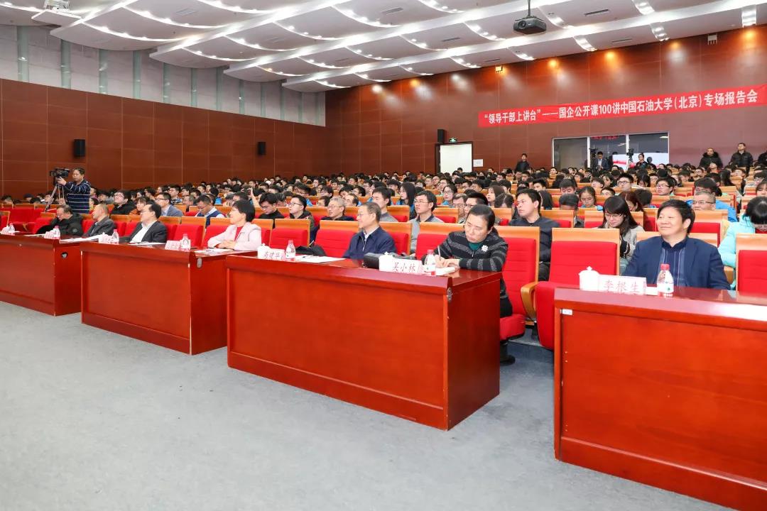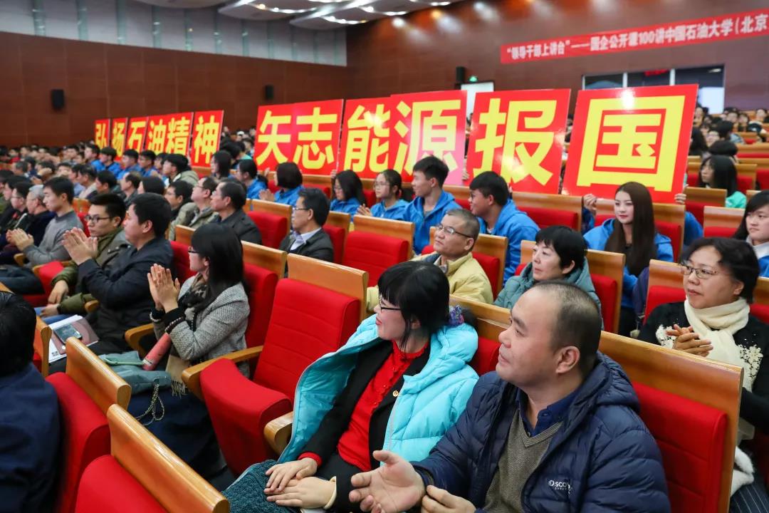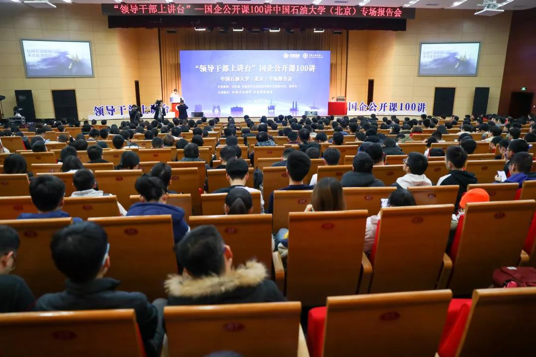 12月27日下午,中国海洋石油集团有限公司以“领导干部上讲台”——国企公开课100讲活动为契机再次来到中国石油大学(北京)。中国海油党组书记、董事长,中石大杰出校友汪东进以“弘扬石油精神 矢志能源报国——我国海洋石油工业践行石油精神实践”为主题,为全校700余名师生作了专场报告。
