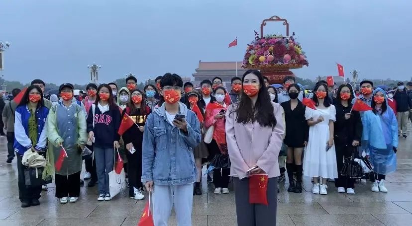 外国语学院 2019级本科生郭佳怡说:“我始终相信,爱国是每一位中华儿女刻在骨子里的基因。这一天,我与数万人冒着深夜里淅淅沥沥的雨水,坚守在天安门广场上,只为那半分钟风雨无阻的升国旗、唱国歌仪式。千万人跋山涉水远道而来,源于信仰的力量,也是中华儿女专属的浪漫。愿祖国繁荣昌盛,山河无恙,祝愿中华人民共和国生日快乐!”安全与海洋工程学院 2022级本科生修智远说:“常道此生不悔入华夏,来世还做中国人,作为一名新时代中国青年,总要去看一次在天安门的升旗。当国歌响起,五星红旗飘扬,目光所至皆为华夏,五星闪耀皆为信仰。我们生长在红旗之下,享受着先烈们抛头颅洒热血换来的今天,每当看到红旗升起,更坚定内心的爱国精神,厚积薄发,开物成务,努力成为可堪大用能担重任的时代新人,为祖国能源安全贡献自己的力量。”理学院 2022级本科生陈凯炫说:“站在壮阔的天安门广场上,我看见人民英雄纪念碑巍然耸立,我望见广场中央上‘祝福祖国’的巨型花篮,花篮上‘喜迎二十大’的字样传递着全党、全军、全国各族人民对党的二十大胜利召开的热切期盼,表达着对国家繁荣富强的美好祝愿。破晓晨光出现,国旗护卫队也迈着整齐划一、铿锵有力的步伐走向升旗台。当五星红旗冉冉升起的那一刻,人群中爆发出震耳欲聋的欢呼声,我们流淌着中华的血液、烙印着爱国的誓言,青春学子当始终与党和国家同呼吸共命运,践行‘强国有我’的铮铮誓言,绽放青春、施展才能!”