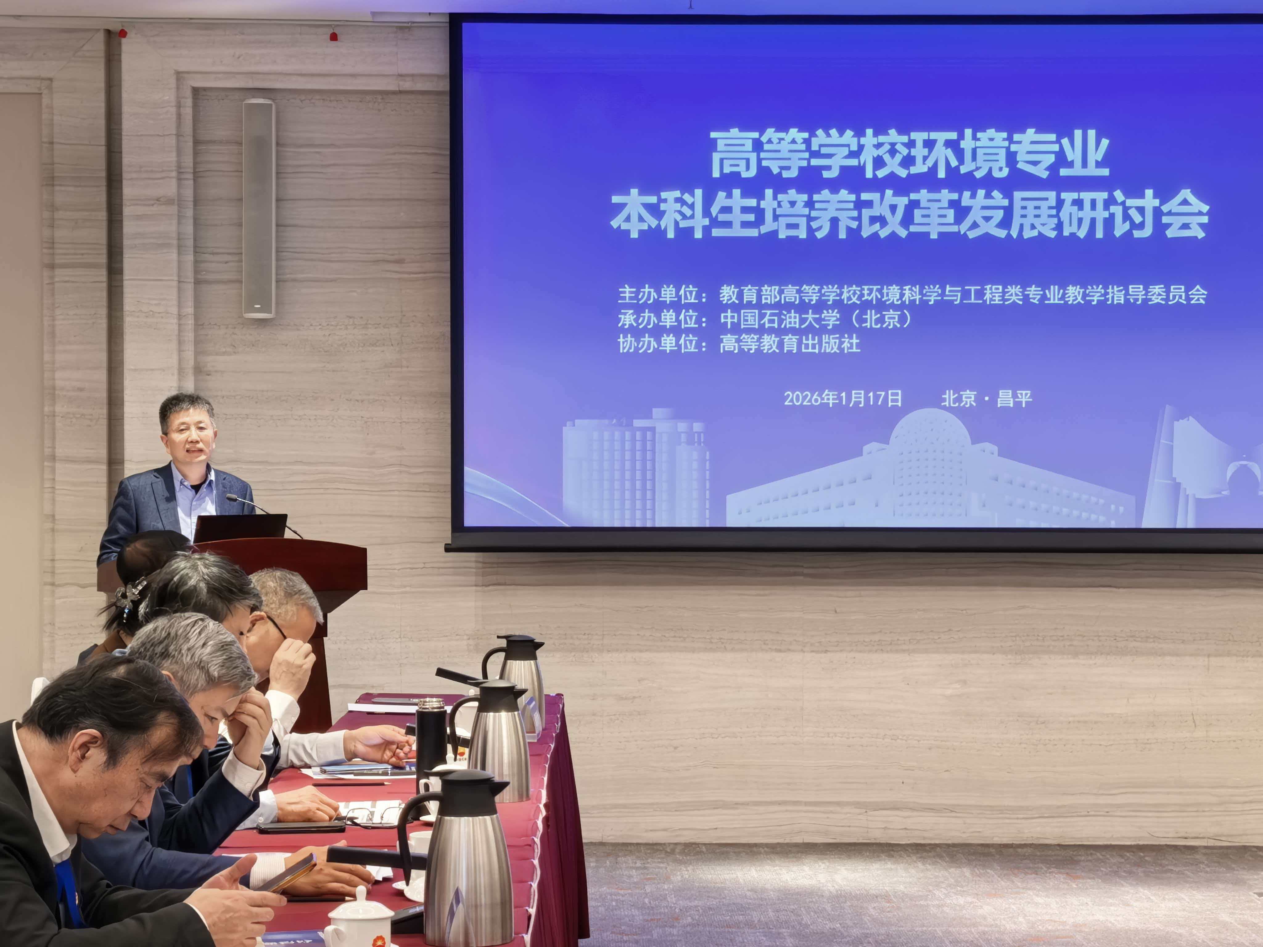 为深入推进环境专业本科教育改革创新,聚力提升人才培养质量与学科建设水平,1月17日,由教育部高等学校环境科学与工程类专业教学指导委员会主办、中国石油大学(北京)与高等教育出版社联合承办的高等学校环境专业本科生培养改革发展研讨会在石油科技交流中心召开。本次会议汇聚了来自全国32所高校的50余位专家教授,围绕环境专业本科生培养体系重构、课程改革、招生就业等核心议题进行深入研讨,共商环境教育高质量发展大计。