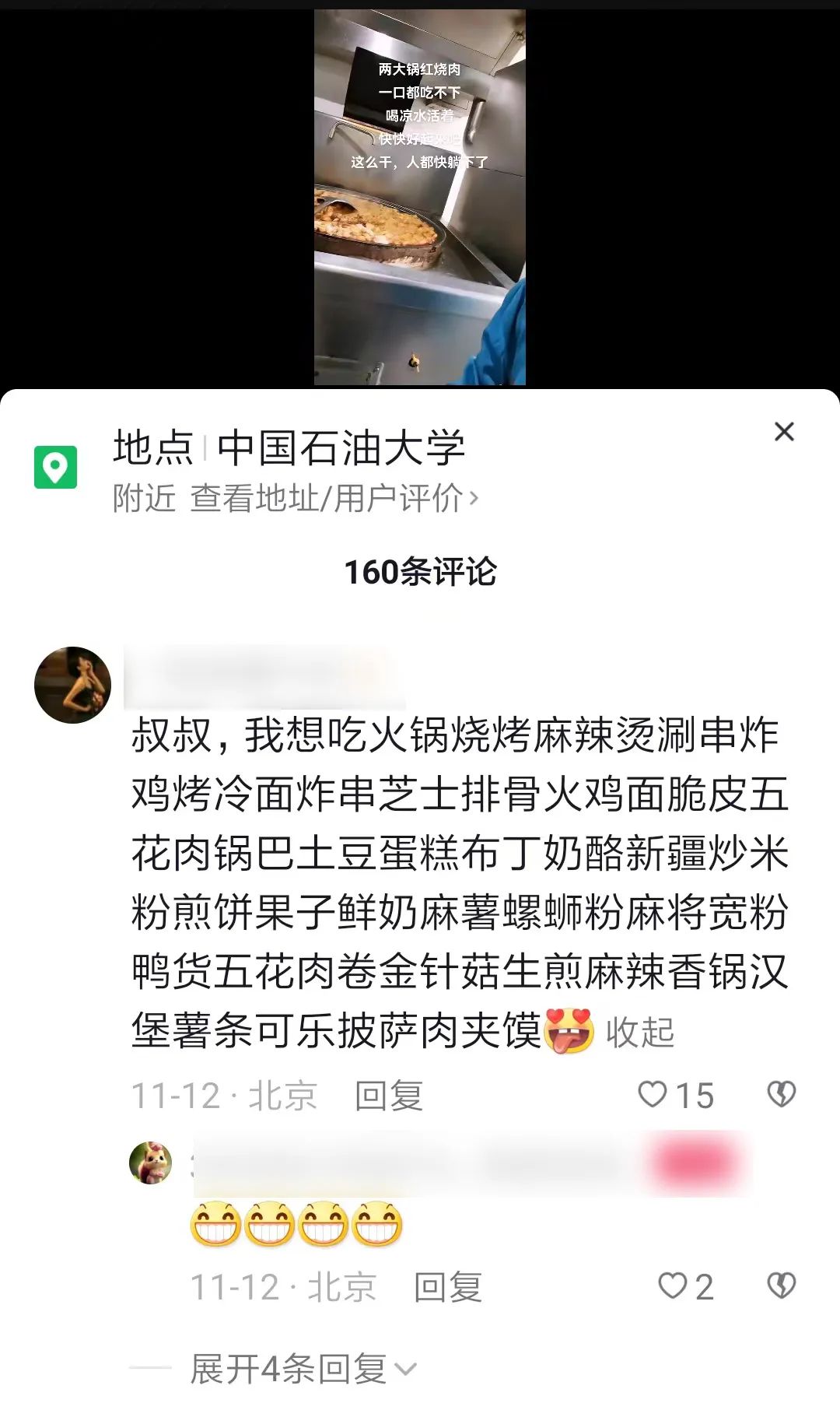 2018年,刘海涛来到中石大从事餐饮工作。自学校进入临时管控状态以来,同学们虽然分隔在各个宿舍区域,却不知从哪儿知道了“风声”,陆续不约而同地“聚到”刘海涛的短视频下留言互动,或“下单”点菜,或道声问候,或点赞致谢,或提建议想法……刘海涛也总是尽量满足学生们的需求。