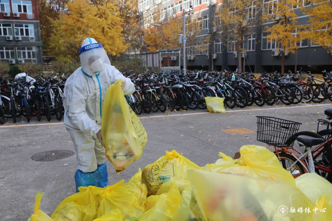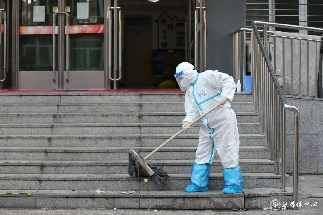 每天往外运送1300多袋的垃圾,吃饭刚吃一半,穿起衣服就往外清理垃圾,来不及穿上厚衣服,套上隔离服就往外冲。