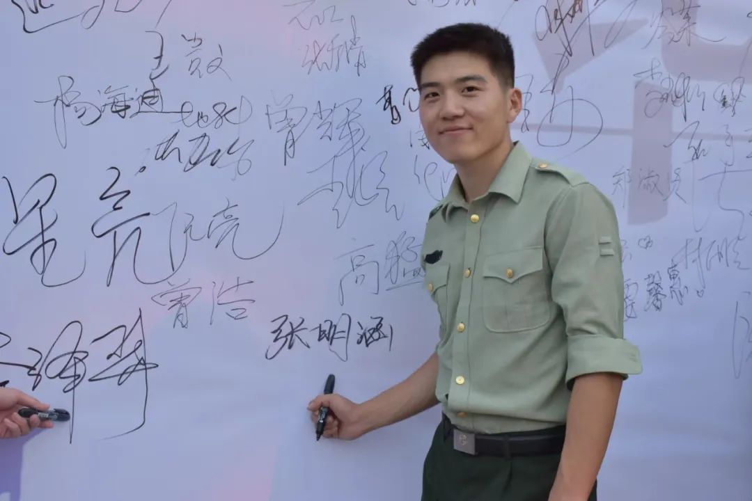 2018年,张明涵前往克拉玛依校区,作为十三连连长,担任新生军训教官。半个月的时间里,他在训练中严格要求,在休息时幽默风趣,对学生关心照顾,而且善于做思想工作,鼓舞连队士气,把大家团结在一起。“当教官的过程,是学生身份到军人身份的再次转化,看着新生们在这个过程中责任意识、集体荣誉感不断增强,真的很自豪!”