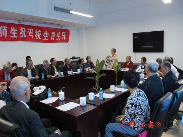 座谈会上,钻井53级全体同学向四位教师鞠躬致谢。钻井53级三班班长曹玲介绍了《庆祝母校六十华诞文集》,里面收录了钻井53级全体同学的照片、通讯录以及原创文章等珍贵内容,并赠送给教师和学生代表。随后,华泽澎、沈忠厚、方华灿、刘希圣作为当时钻井专业教师回忆了北京石油学院时期办学的艰辛以及当时上课、工作的情景,对学校给予的支持和帮助表示感谢,对学生们取得的成就表示欣慰,并祝同学们身体健康。方华灿还独唱《钻井工人之歌》表示向母校六十周年献礼。座谈会结束后,师生代表合影留念。