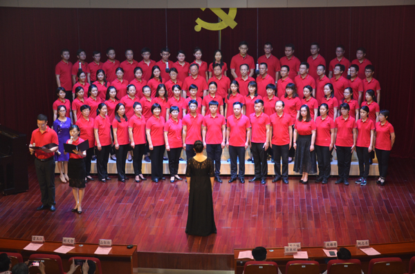 6月29日,由党委组织部、党委宣传部、校工会联合举办的庆祝建党九十六周年教职工合唱展演在教职工活动中心报告厅举行。共有来自18个单位的700余名教职工参加演出。校领导山红红、张来斌、刚文哲、雷玉江、吴小林、庞雄奇、张士诚,副校级干部鲍志东,以及教职工代表观看了演出。