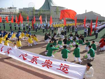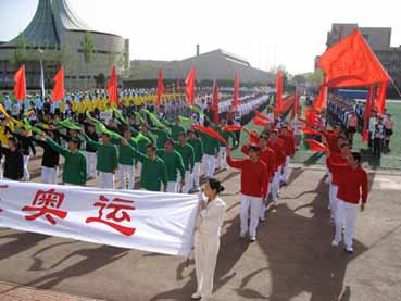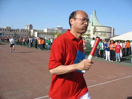 4月20日至21日,我校在红旗操场举行了迎奥运春季运动会。此次运动会上,我部教师取得了教师组总分第三名的好成绩。
