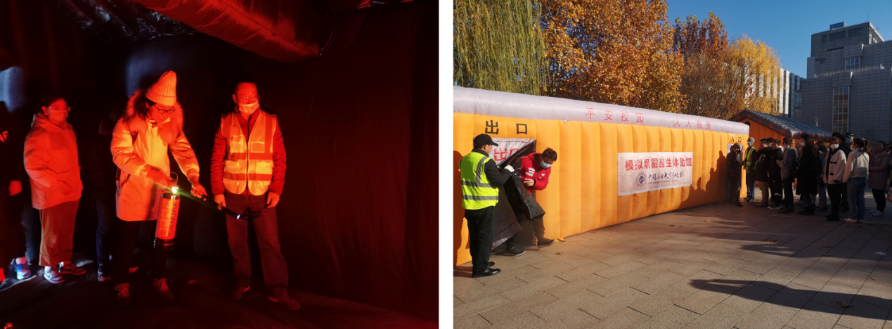为提升学院学生消防安全素质,增强自救逃生能力,11月20日上午,安全学院组织学生参加由保卫处在北校园南广场组织的模拟灭火实训和模拟烟雾逃生体验活动。